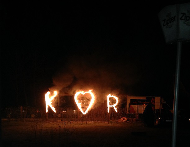 Lichterschriften werden aus bengalischen Lichterlanzen gefertigt.