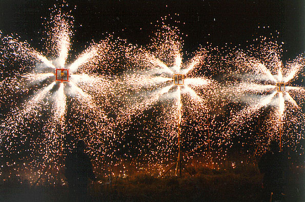 In einem speziellen Rahmen installiert, erleuchten Sie nach der Zündung in den Farben rot, gelb, blau, gold, silber, grün, weiß oder gemischt in unterschiedlichen Größen.
